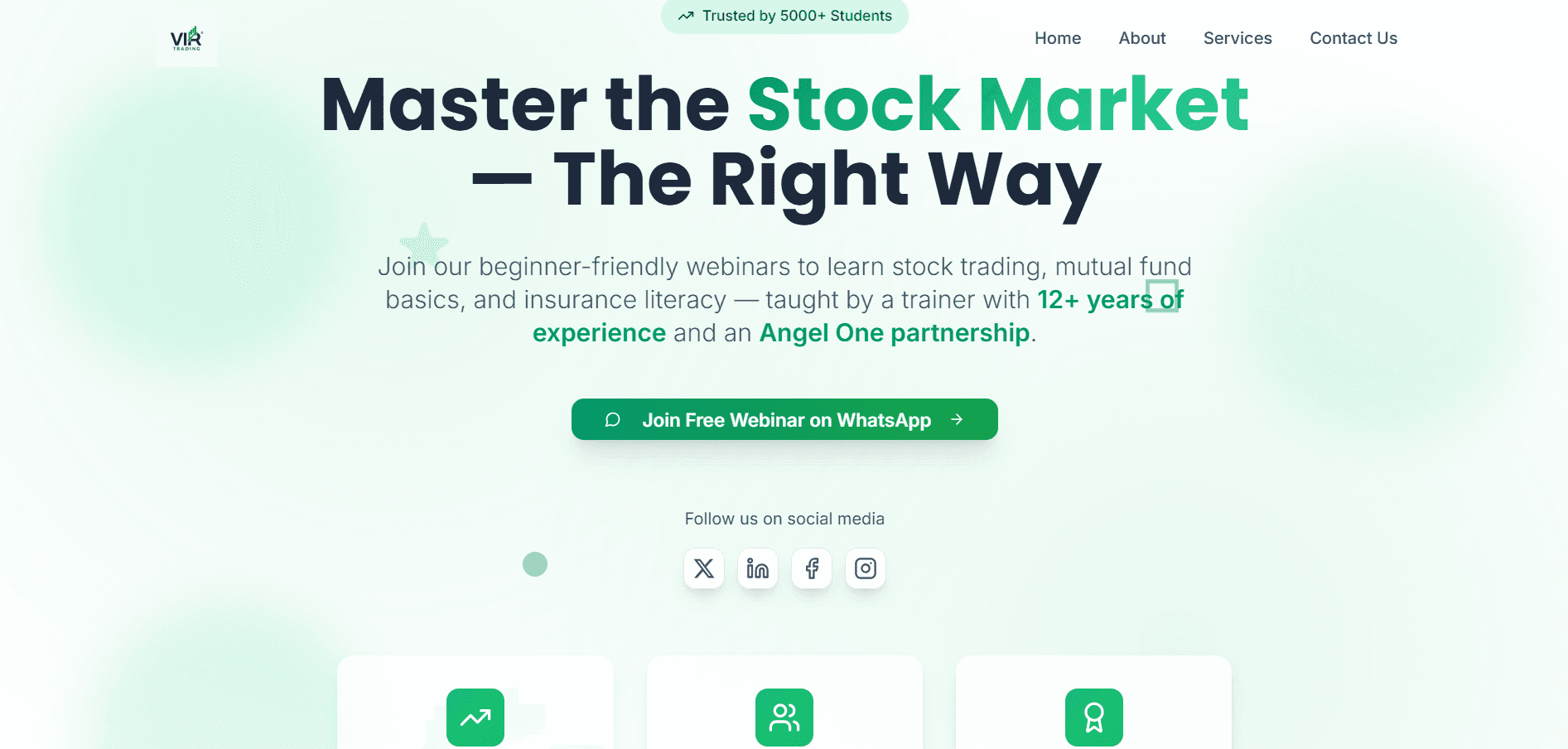 Every discipline, one direction — growth that looks and feels intelligent Each service card should be rewritten keep cards design same